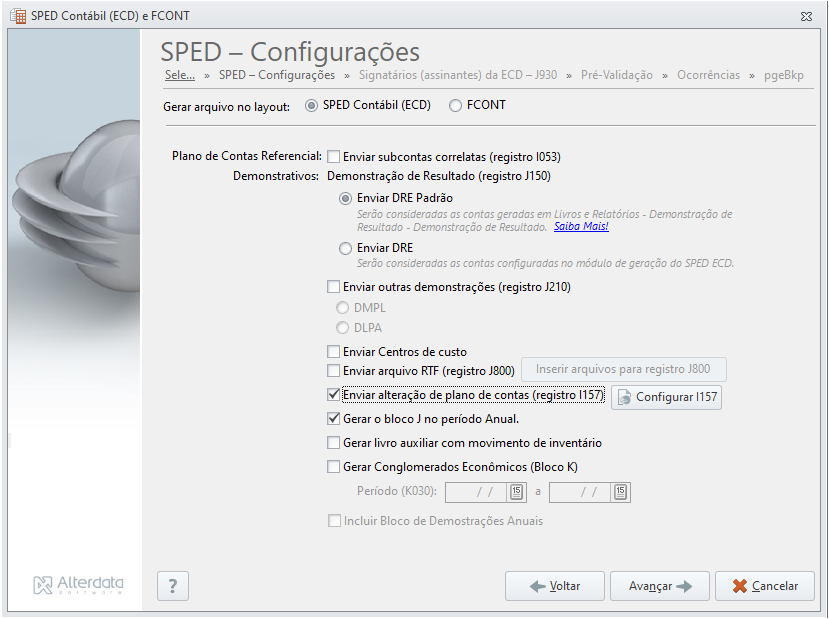 Essa configuração será responsável por gerar as demonstrações contábeis com encerramento de todo o período do exercício dentro da ECD.