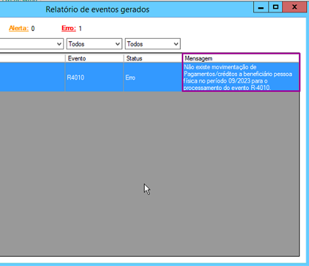 Este artigo tem como objetivo orientar o usuário sobre como proceder quando for apresentado o erro: Não existe movimentação de Pagamentos/créditos a beneficiário pessoa física no período XX/XXXX para o processamento do evento R-4010: