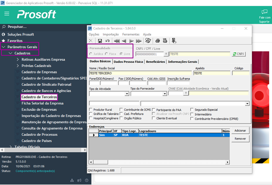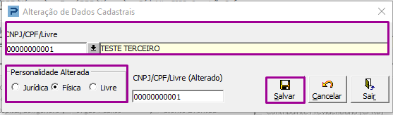 Caso seja identificado que a personalidade não esta cadastrada como Física, realize a alteração dos dados do cadastro de clientes e fornecedores
