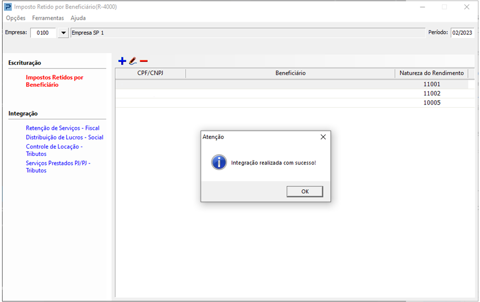 IMPORTANTE: Para que ocorra a integração, é necessário ter o CPF do Beneficiário cadastrado na rotina Fiscal > Cadastros > Clientes e Fornecedores. Consulte o artigo F835-Cadastro de Clientes e Fornecedores - Terceiros para auxilio.