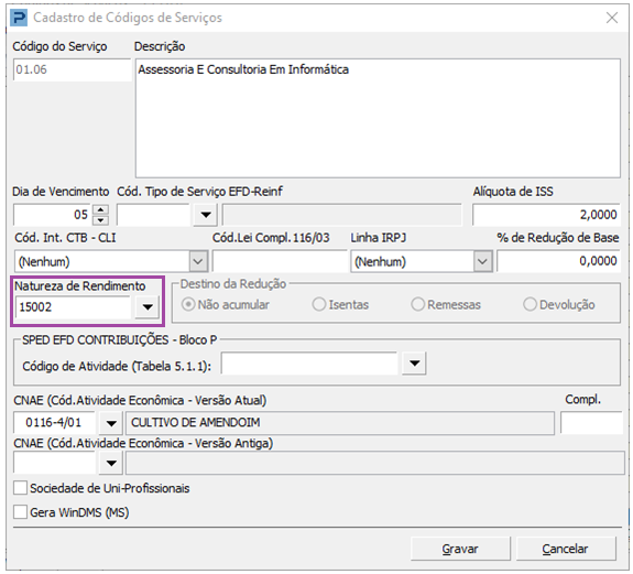 Caso haja dúvidas em qual Natureza de Rendimento utilizar, consulte Fiscal > Tabelas> Tabelas Fiscais para Arquivos Magnéticos> Tabela 01- Natureza de Rendimentos.