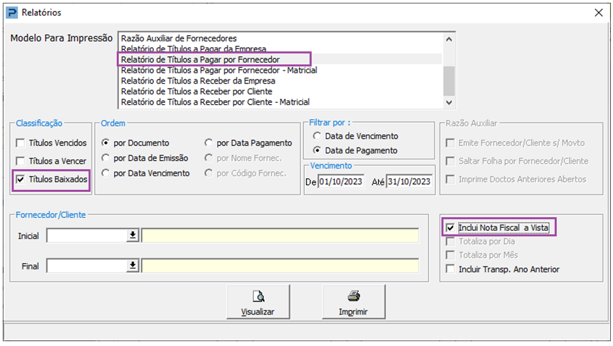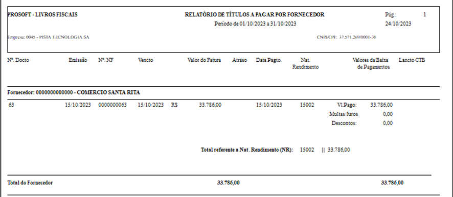 Relatório de Títulos a Pagar por Fornecedor (notas entradas e serviços tomados)