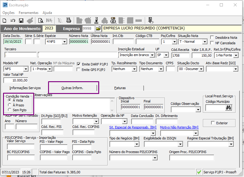 Lembrando que quando a nota é com vencimento a vista, a baixa é realizada automaticamente e quando for a prazo, será necessário a baixa do pagamento em lote ou na fatura para que seja possível a integração.