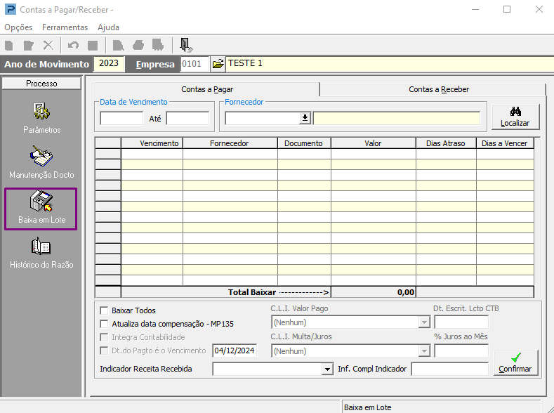 É possível realizar conferências dos valores e pagamentos em: