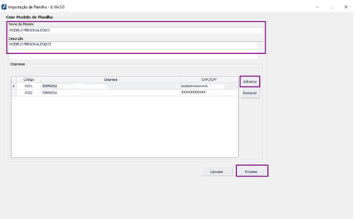 A partir desse ponto, o processo de importação será igual ao exemplificado para o Modelo Padrão