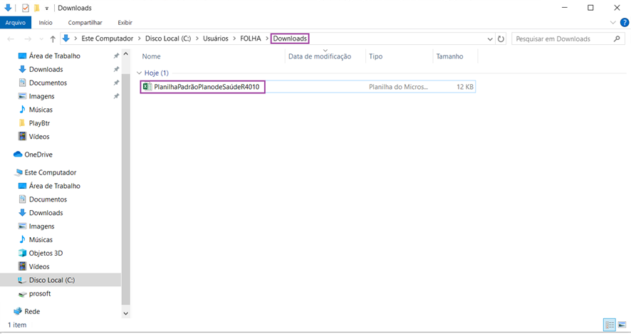 Após a baixa do arquivo, a pasta onde ele foi salvo será aberta: