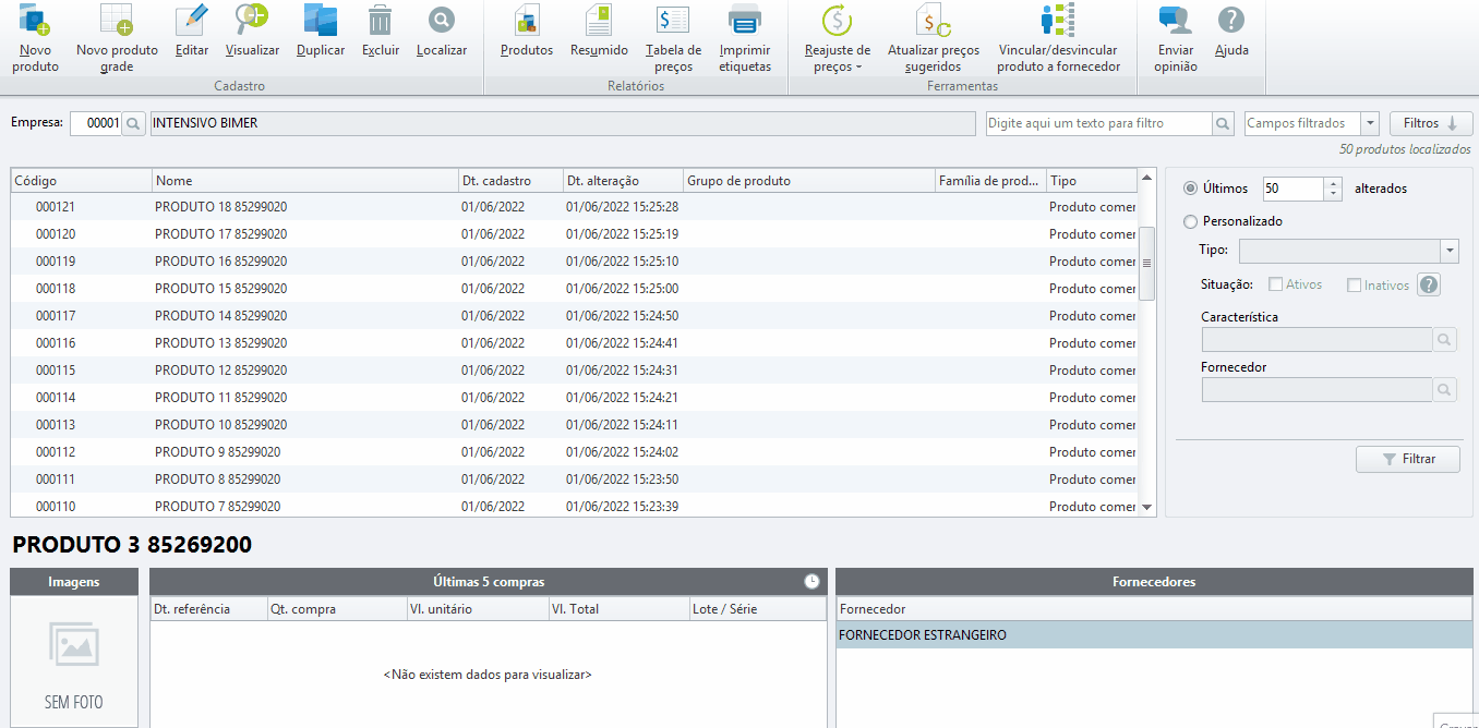 - É importante cadastrar as grades (variações) antes de continuarmos. Você poderá cadastrar as variações por esta mesma tela ou pelo Configurador Bimer / Estoque / Produto / Grade.