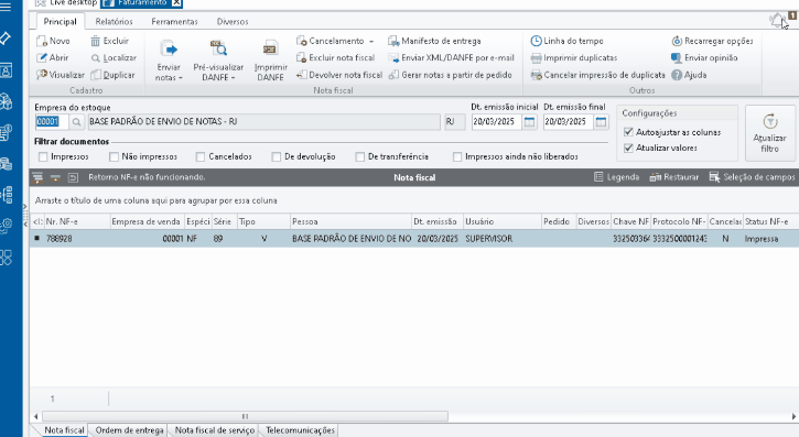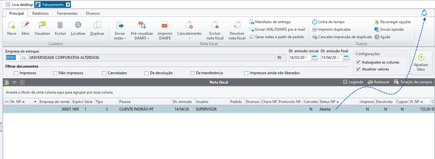 Dentro do seu Faturamento, perceba que no canto superior direito há um sino.