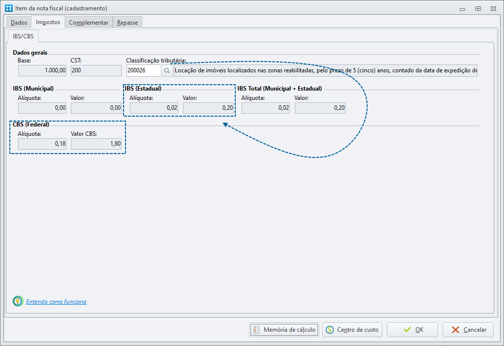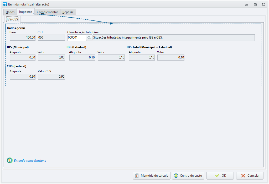 Caso você altere manualmente a classificação tributária dentro do item, o cálculo será automaticamente refeito de acordo com as especificações do código.