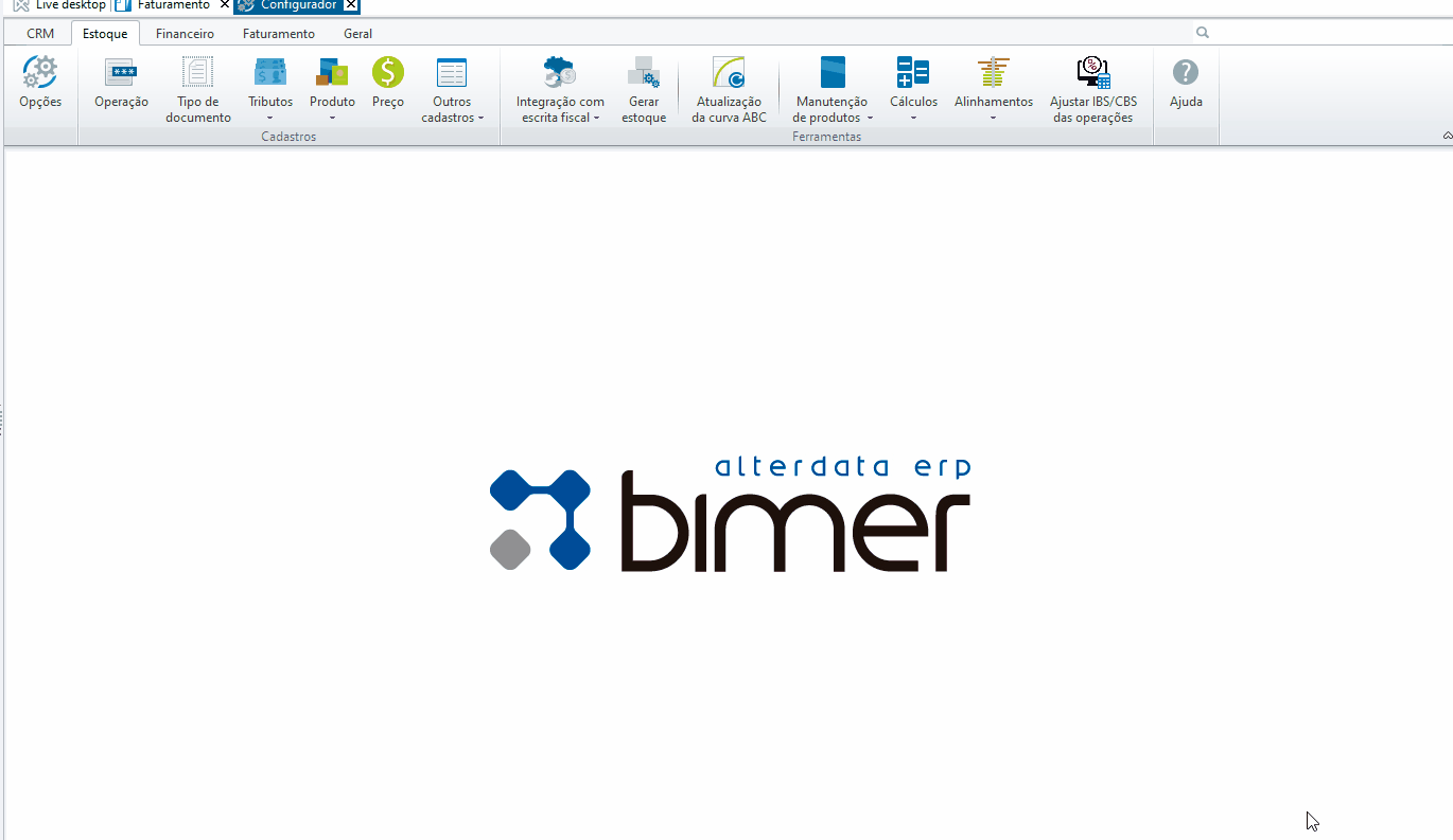 - Configurador / Estoque / Tributos / Classificação tributária IBS e CBS:
