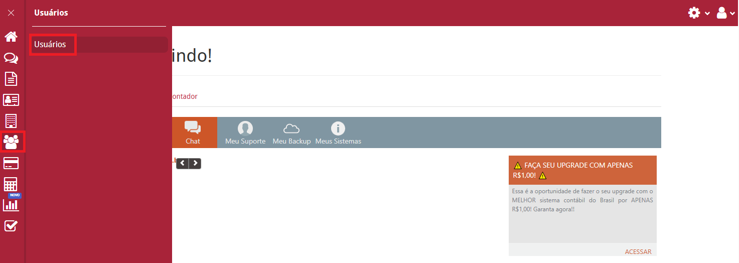 - Para realizar o cadastro do seu cliente, acesse o Menu Usuários e clique em Novo Usuário.