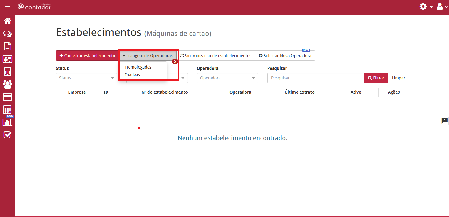 - Selecione se vai exibir por operadora ou por estabelecimento, depois clique em filtrar;