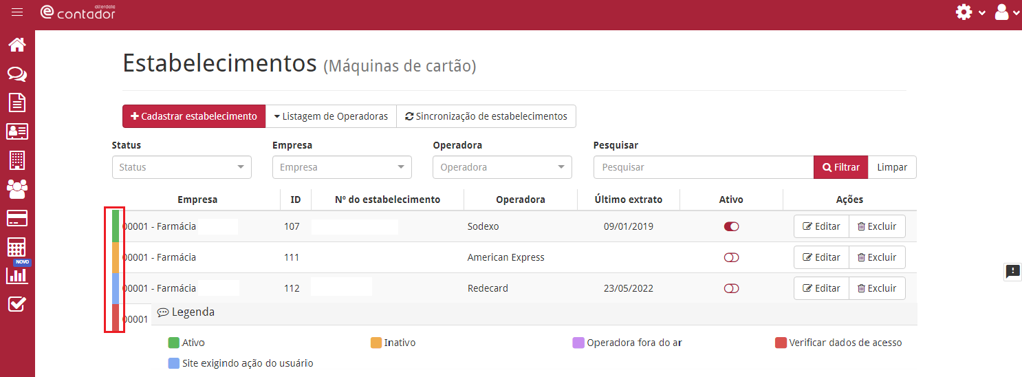 Ativo: Quando está tudo certo com o cadastro do estabelecimento, e ele consegue baixar os extratos.
