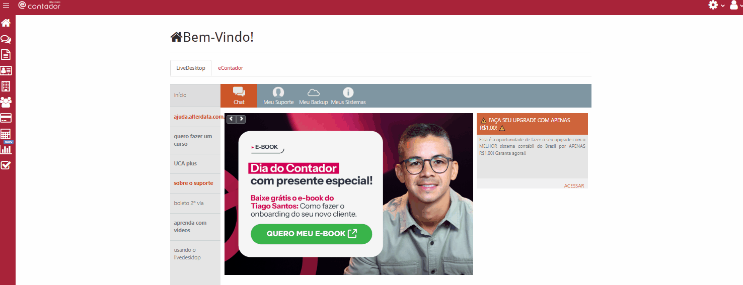- Acesse o link https://econtador.alterdata.com.br, ou acesse o sistema WPHD - Alterdata Pack - Aba eContador;