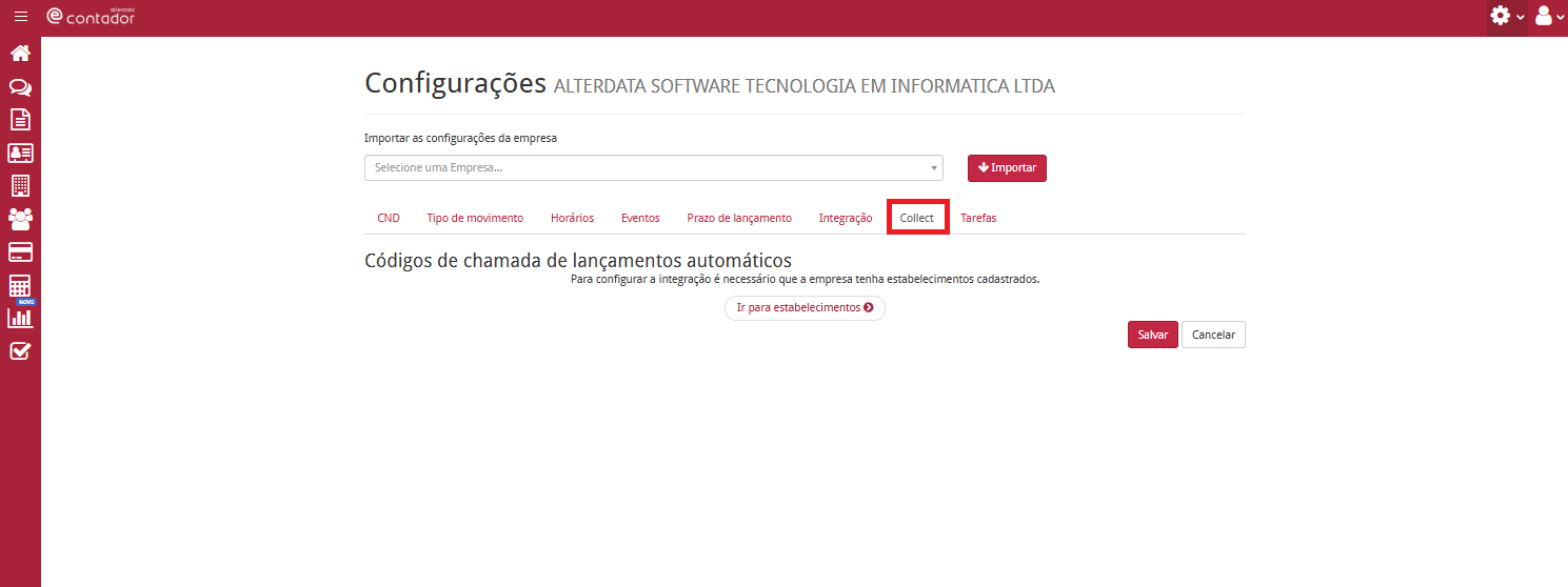 Para saber as configurações da integração do Collect com o Contábil, clique aqui.