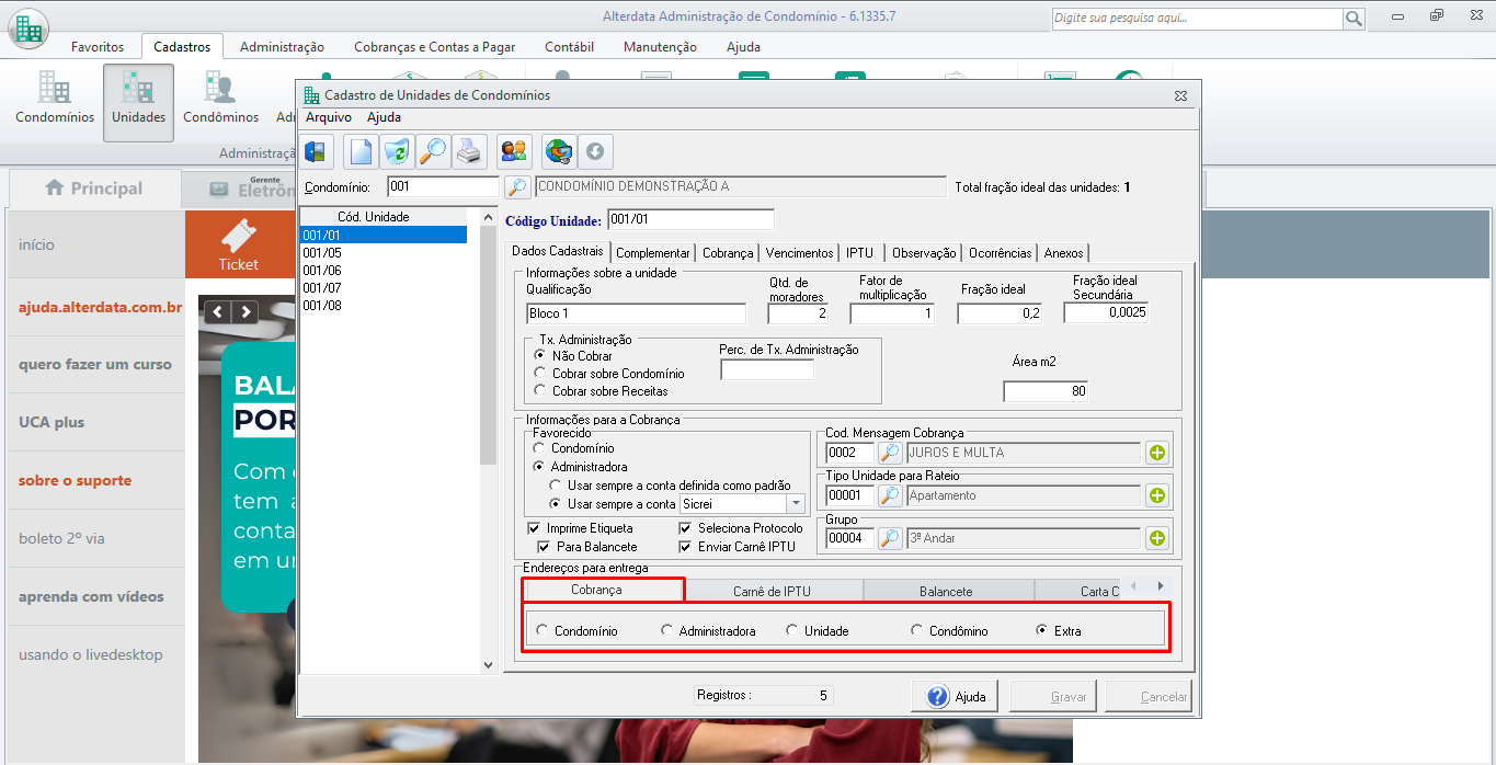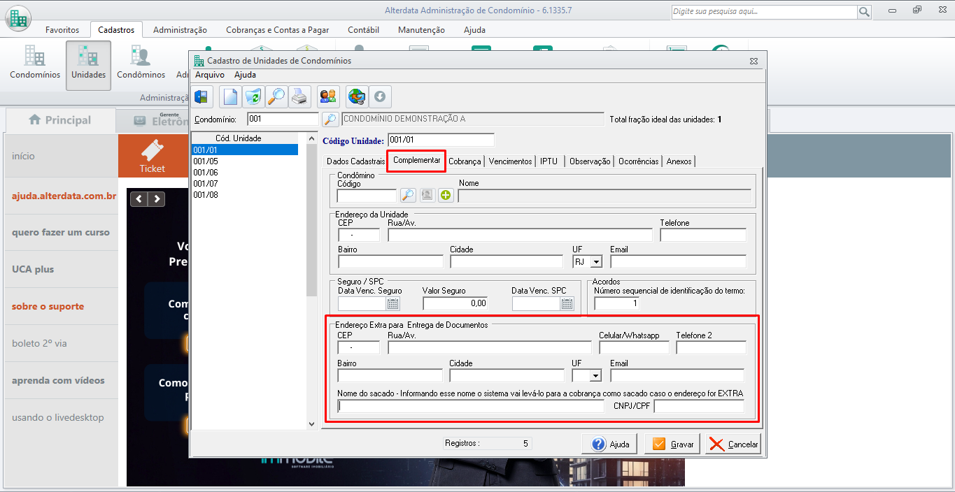 - O CPF do endereço extra é o mesmo do condômino, O envio será sempre para o WhatsApp do Condômino.