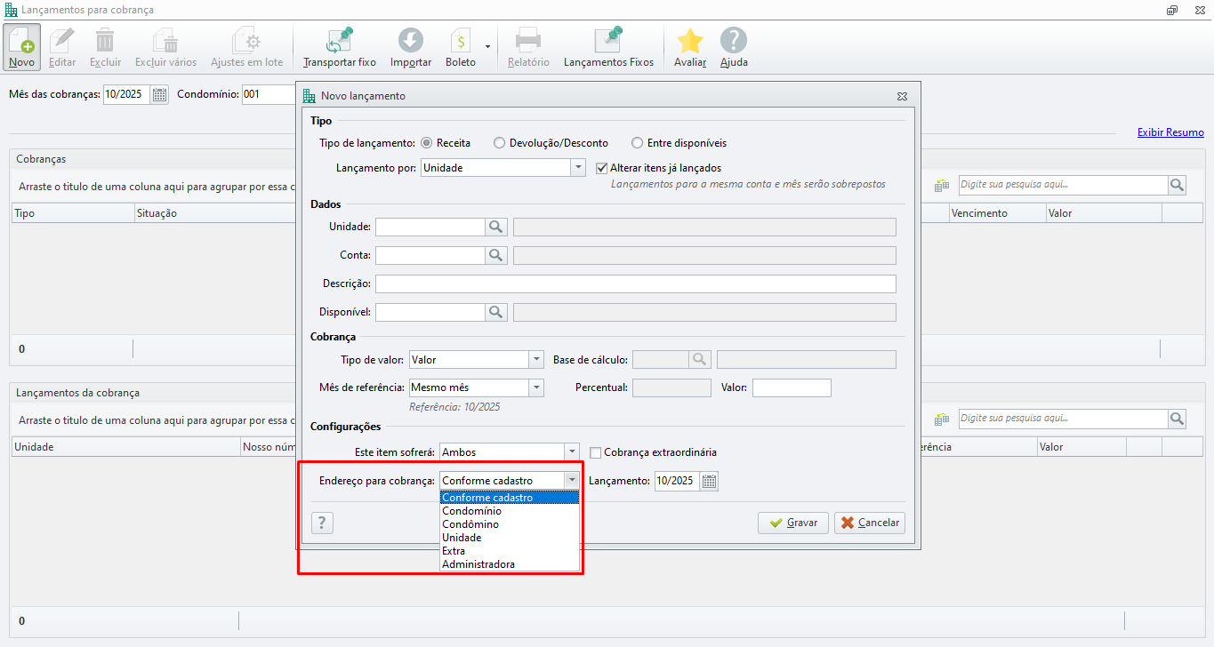 O endereço extra é o mesmo endereço de cobrança (definido na unidade ou no lançamento) E o campo Celular/WhatsApp do endereço extra estiver preenchido, O envio será feito para esse número (o número do Endereço Extra).