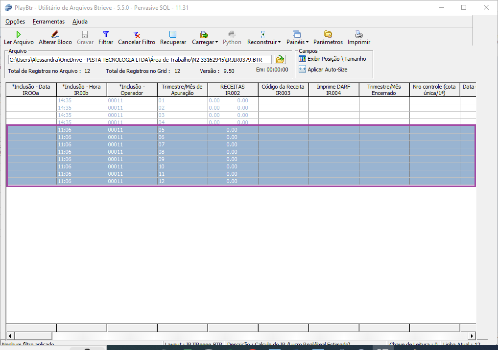 1- Abrir os arquivos IRJIReeee.BTR e IRJCLeeee.BTR no probrt e excluir as linhas dos meses 05 a 12, deixar somente de 01 a 04.