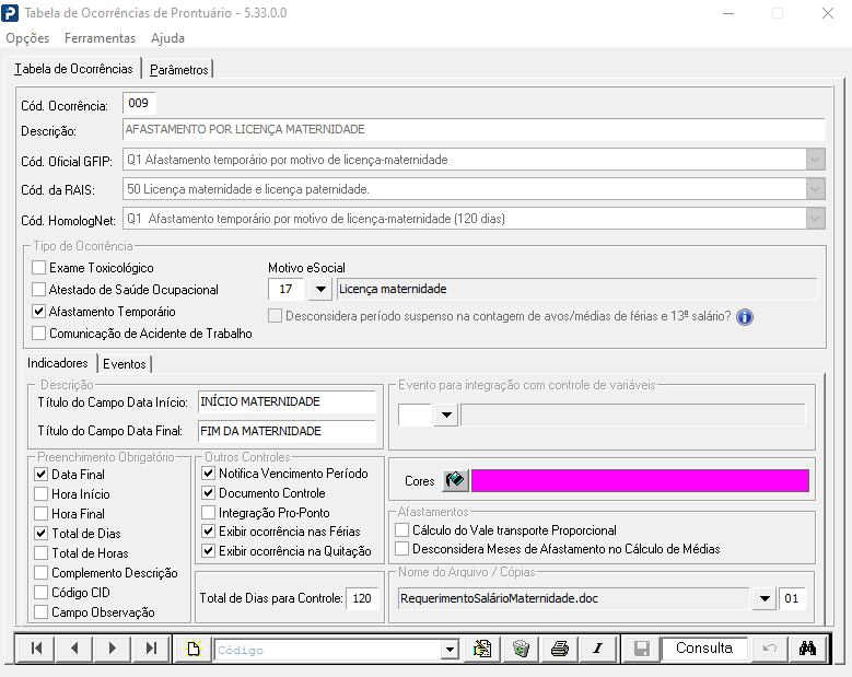 3- No caso de Ocorrências solicitar que verifique se na Tabela de Ocorrências em Social > Folha de pagamento > Tabelas > Tabela de ocorrências de prontuário está identificado Notifica Vencimento Período na ocorrência desse funcionário.
