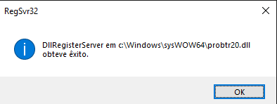 Observação: No exemplo abaixo usaremos o nome do componente "Probtr20.dll", porém para outros componentes apenas troque o nome "Probtr20.dll" pelo nome do componente desejado.