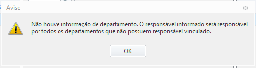 O campo de Departamento é opcional, porém, se não for preenchido, o sistema entenderá que o Responsável informado será responsável por todos os departamentos da empresa. Conforme o aviso ao lado explica.