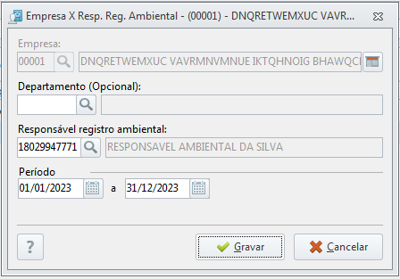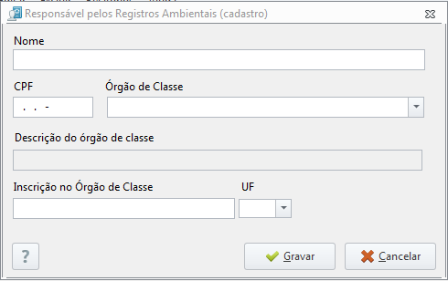 - Preencha todos os campos dessa tela com as informações do Responsável Ambiental e clique em Gravar;