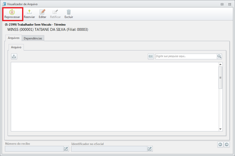 - Para que o eSocial faça uma nova validação, clique em "Reprocessar";