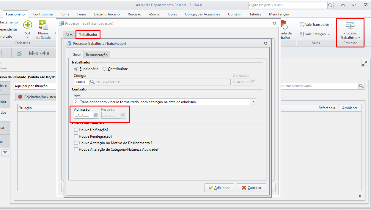 - Realize o ajuste alterando a data de admissão para uma data diferente da original;