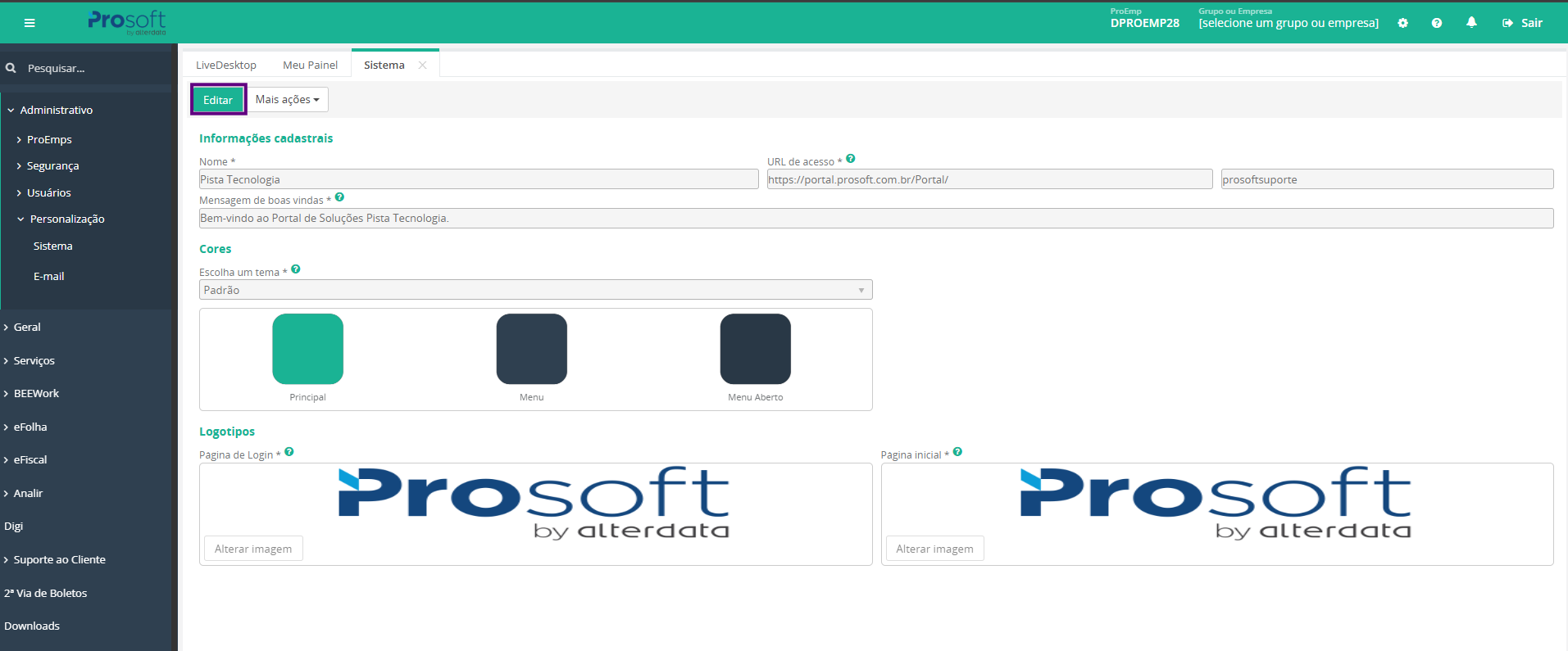 Não habilita o botão Editar para alterar as Informações cadastrais no Easy4all.