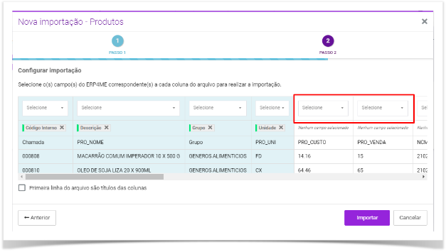 Correlacione as colunas realizando o vínculo correspondente a cada campo;