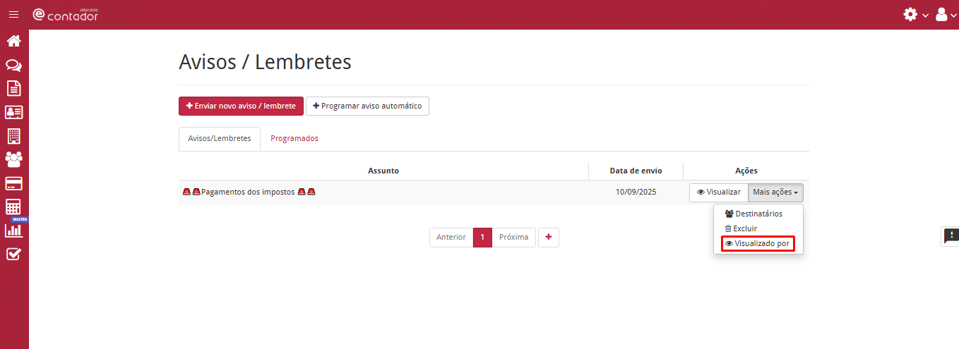 Nesta opção, é possível conferir os clientes que viram o aviso ou lembrete.