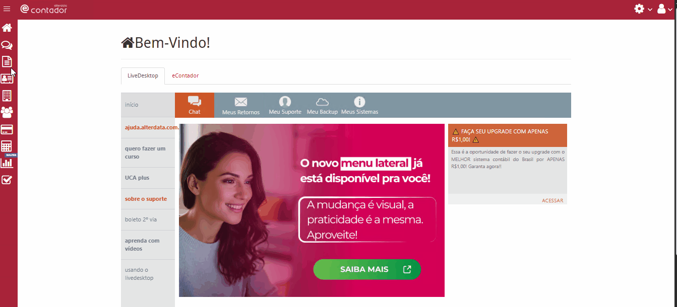 - No menu do eContador, acesse Documentos > Avisos > Lembretes
