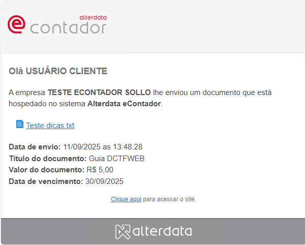 É enviada uma notificação quando o usuário Cliente realizar o envio de um novo documento.