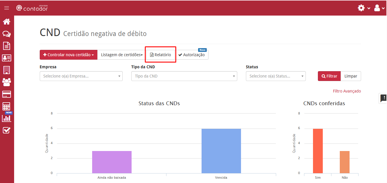- O módulo CND ele é utilizado para fazer o controle das Certidões Negativas de Débito das empresas. Você tem a opção de realizar o controle de forma Manual e Automática.