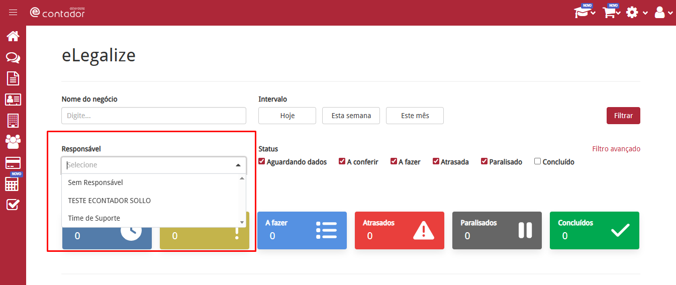 eLegalize - Como filtrar o processo no eLegalize pelo responsável