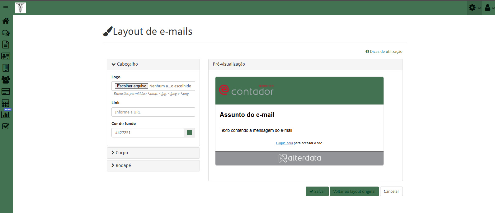 - No campo Rodapé, você poderá selecionar a Logo, Link e Cor de Fundo do rodapé e-mail