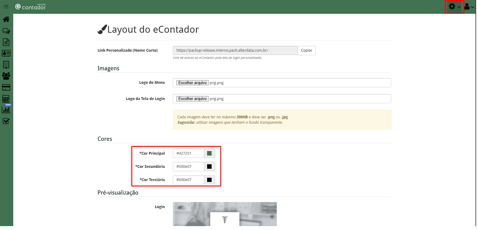 A personalização só é disponibilizada para clientes com o eContador Master.