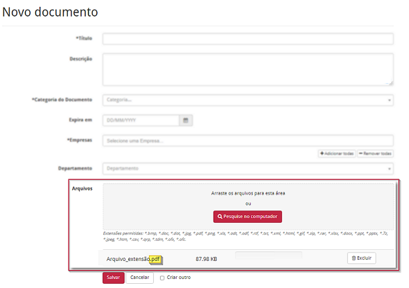 A mensagem 'O UpDocs suporta apenas arquivos na extensão .pdf' é apresentada quando você adiciona o arquivo na pasta e o UpDocs o identifica com uma extensão diferente de .pdf.