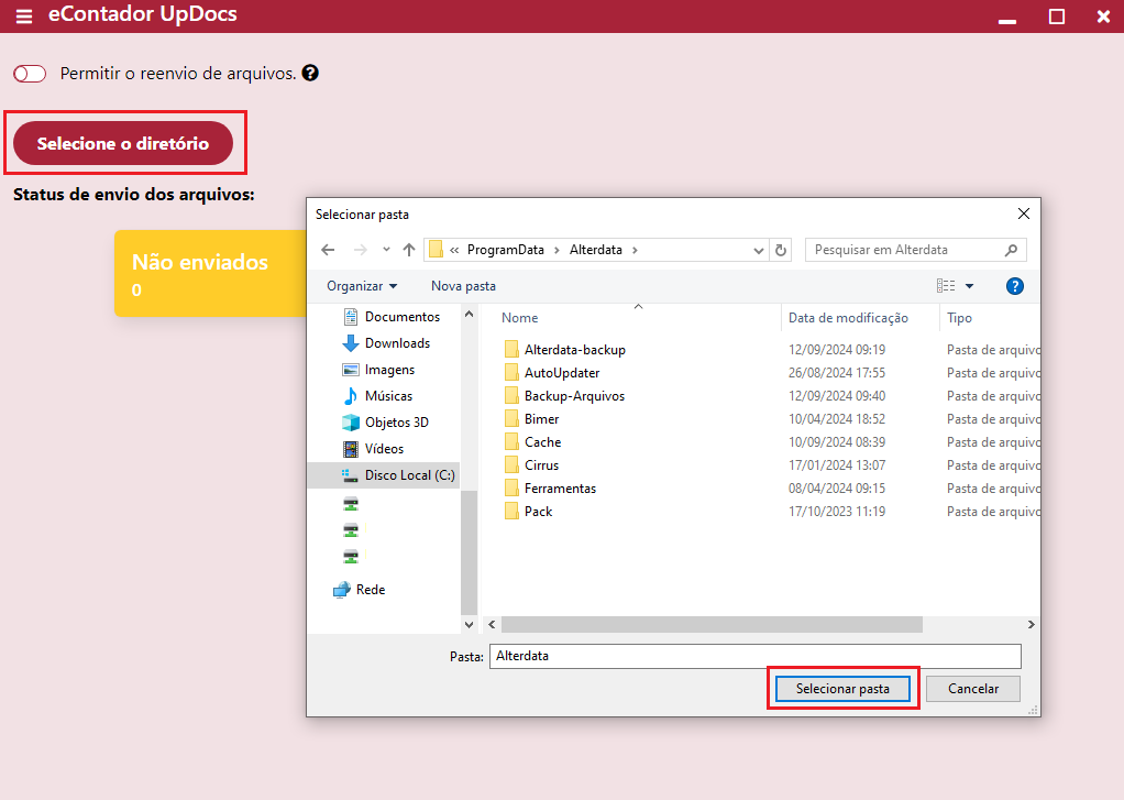 Selecione o diretório da pasta que contém os documentos;