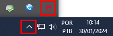 O UpDocs pode ser acessado através dos ícones ocultos, visto que ele sempre será aberto ao ligar o PC.