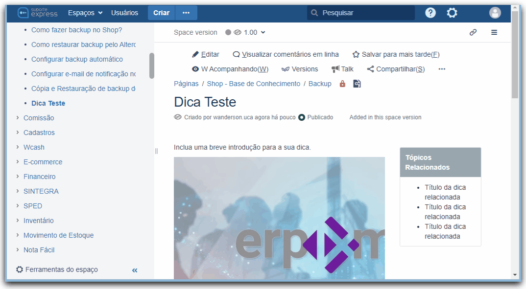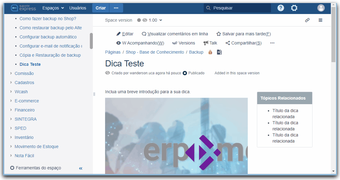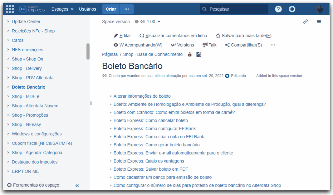 O problema de compartilhar o link assim, é que o título da dica por exemplo pode ter sido atualizado. Exemplo: se o título da dica era "Dica teste", na área anônima o link era (https://ajuda.alterdata.com.br/shopbase/dica-teste), alterando o título para "Dicas teste", o link será (https://ajuda.alterdata.com.br/shopbase/dicas-teste). Esse é um dos motivos de ocorrerem quebras de link já compartilhados. Então compartilhe o link corretamente.Aviso! Para os espaços dos manuais dos sistemas, aqueles que documentam cada funcionalidade dos sistemas, esse compartilhamento de link é um pouco diferente, pois neste caso o Permalink é que deve ser compartilhamento devido ao controle de versão desses espaços. Mas isso é assunto para outro momento. Ficou curioso né? Então consulte a dica: Qual tipo de link do Ajuda devemos compartilhar?