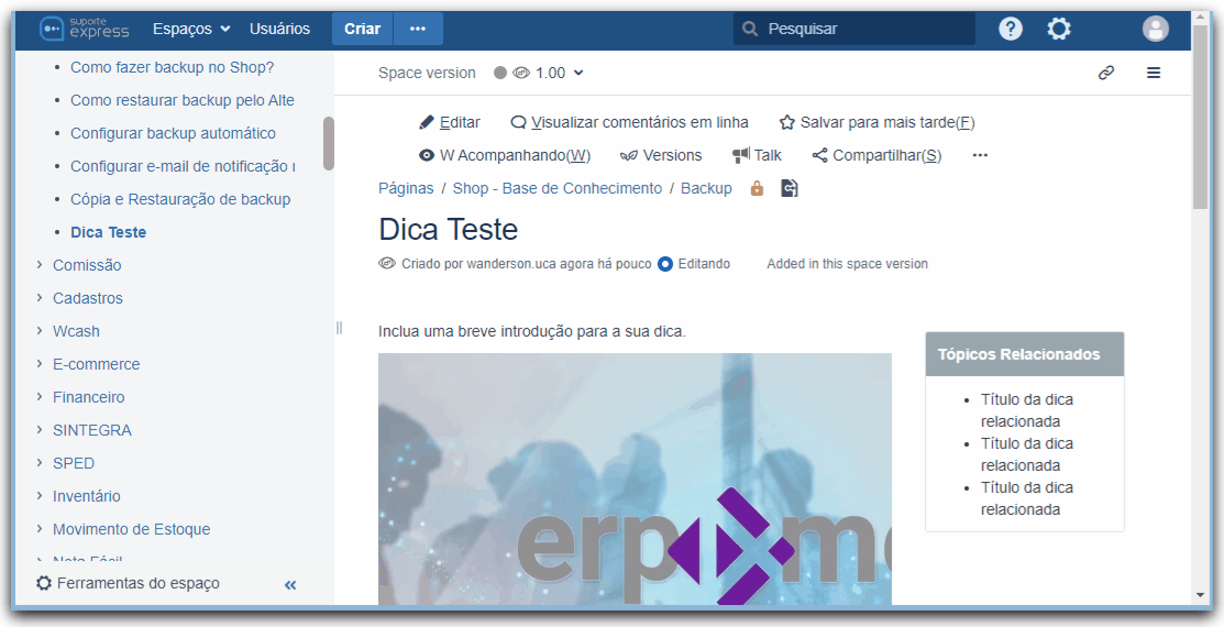 Digamos que você queira criar uma dica sobre o recurso de Boleto Bancario do Shop, neste caso siga os passos: