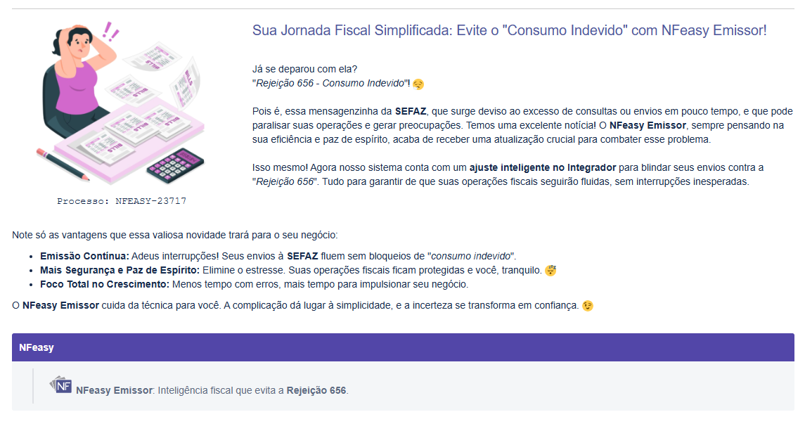 Embora se trate de uma "refatoração" de código do sistema, o DSN o classificou como um destaque nesta versão 4.46 do NFeasy.