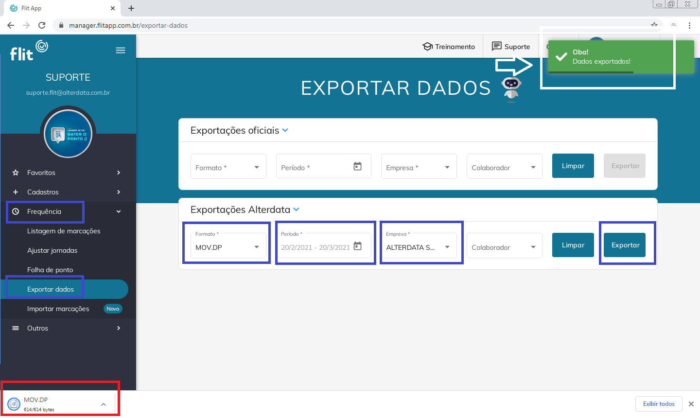 - Clique em Exportações Alterdata e Preencha os campos como desejar.