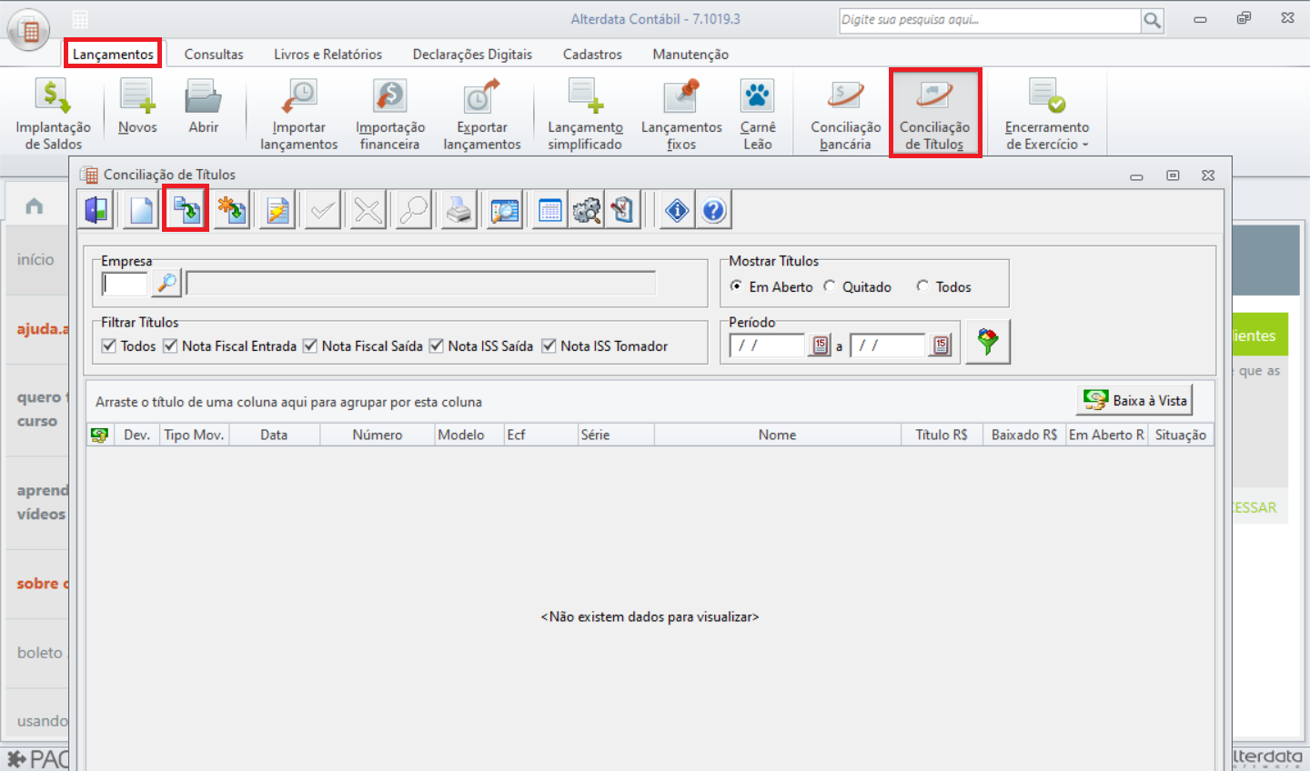 O módulo Conciliação de Títulos tem por finalidade importar as notas do Sistema Fiscal, não sendo necessário realizar os lançamentos contábeis das vendas e compras no Sistema Contábil. Isso permite o controle dos títulos de Fornecedores e Clientes em aberto e quitados.