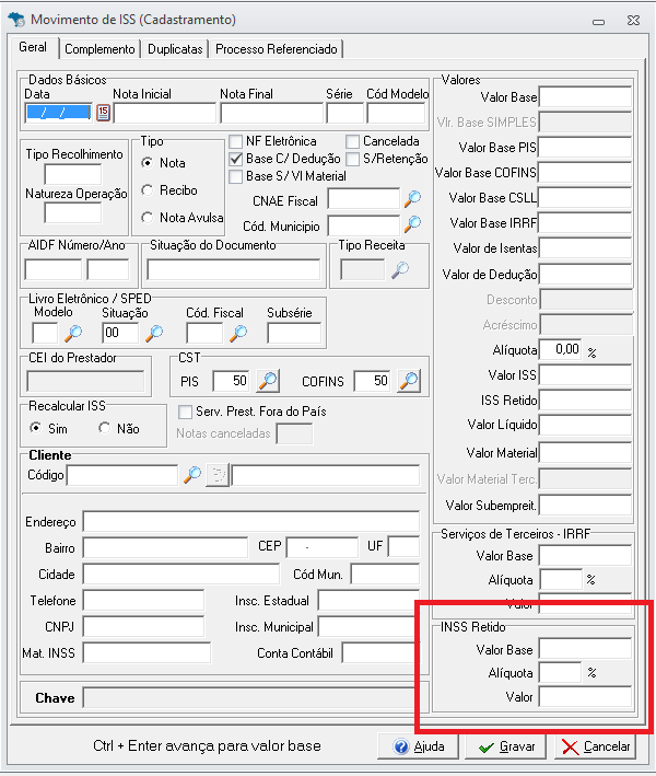 - Ajuste a alíquota no campo INSS Retido para obedecer ao limite permitido.