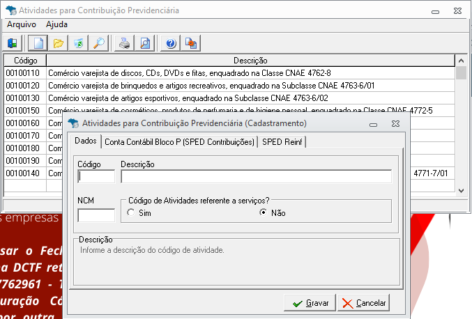 REINF - Como cadastrar o código de atividade para Contribuição Previdenciária?