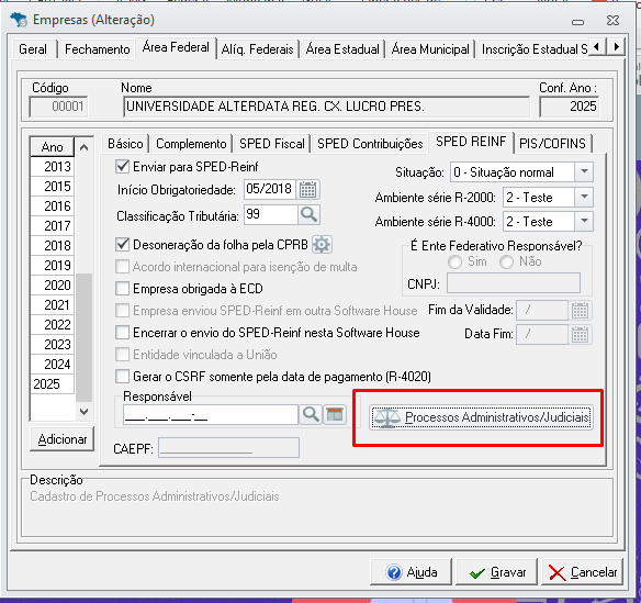 REINF - Como configurar os processos administrativos/judiciais para a geração do evento R-1070 na EFD Reinf