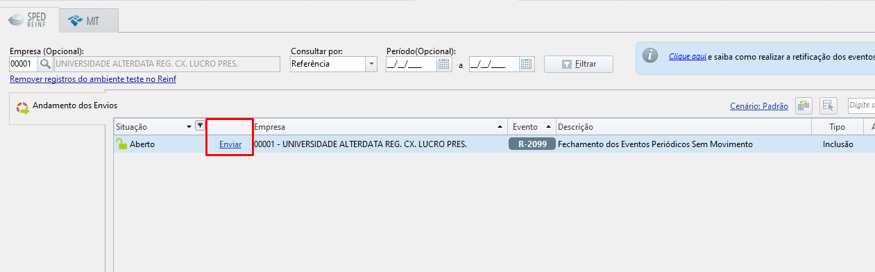 - Acesse a Central DCTFWeb REINF/MIT → REINF;