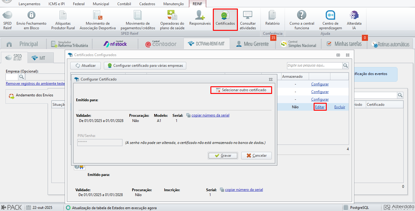 Como alterar o certificado para a REINF? Certificado reinf alterar?